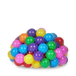 Net bag filled with colorful plastic balls