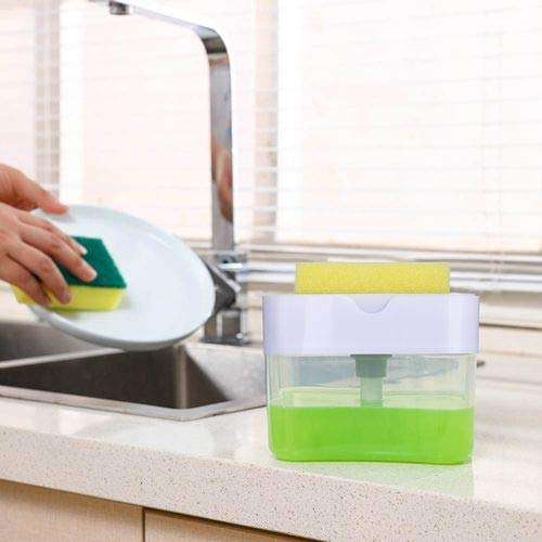 • 2 in 1 Soap Dispenser For DishWasher Liquid Holder Liquid Dispenser Through Pump Black Colour Pack Of 1 With Sponge
