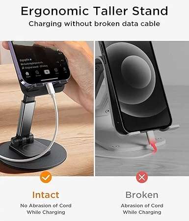 • 【DURABLE MATERIAL】 The phone holder desktop is made of exquisite impact-resistant ABS resin, with good heat resistance and low temperature resistance as well as solid quality. The high-precision smooth surface prevents the device from scratch, and it is hard to break even after long periods of use. The integrated design also saves you from worrying about installation or rusty screws.
