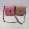 women’s sling bags, one in a shade of green and the other in pink, both featuring a textured pattern resembling small hearts