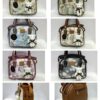 Grid of nine identical small to medium-sized handbags in various colors