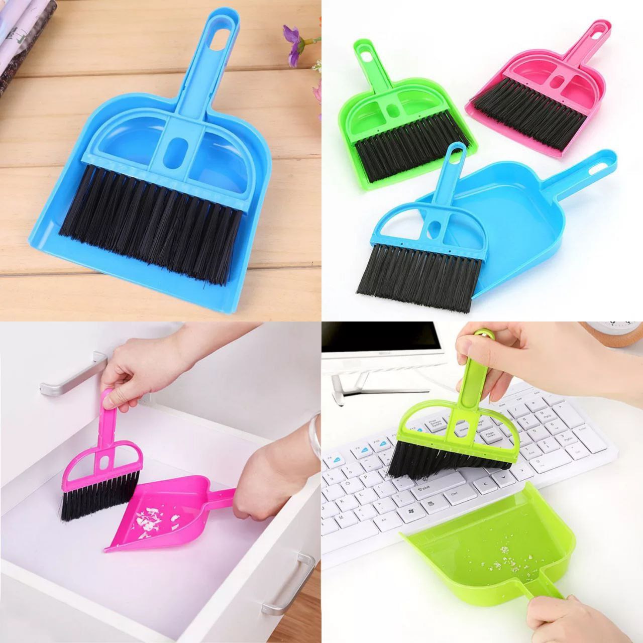 • Material: Mini dustpan brush set made of quality plastic brush, durable and easy sweeping.