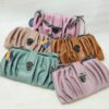 Soft, possibly faux, leather material with a ruched or pleated design on the flap