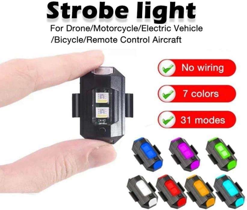 - COMPACT SIZE & LIGHTWEIGHT: This LED flashing strobe light weighs only 6.5gm. It has a compact size design and it will not cause extra burden or space somewhere like RC Aircraft, drones, bikes, motorcycles, e-bikes, RC cars, etc.