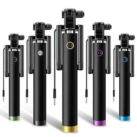 Wired Mini Selfie Stick with Button Wired Silicone Handle Monopod Black Box Selfi Stick | Universal for All Smartphone Selfie