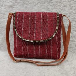 Rectangular handbag or purse featuring a vibrant, multi-patterned design